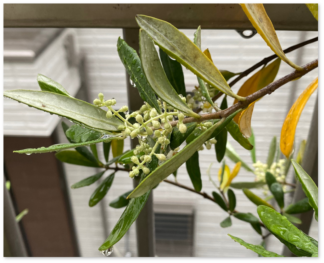たぶん、綿棒で2種類のオリーブの花の中を撫でることで、結実したと思う。今までほうっておいたが結実したことはなかった。