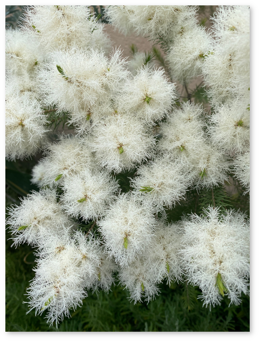 その場でgoogle lensで調べるとメラレウカという植物らしい。