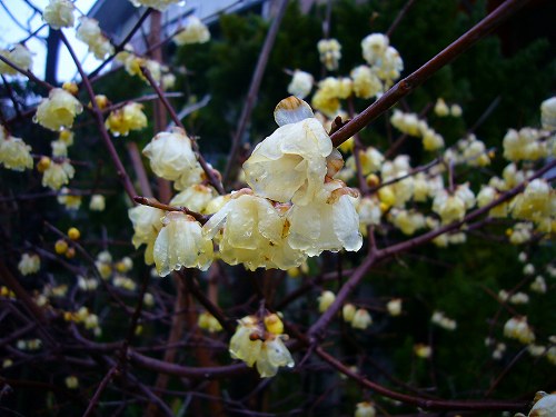 雨にぬれた近所の蝋梅です。