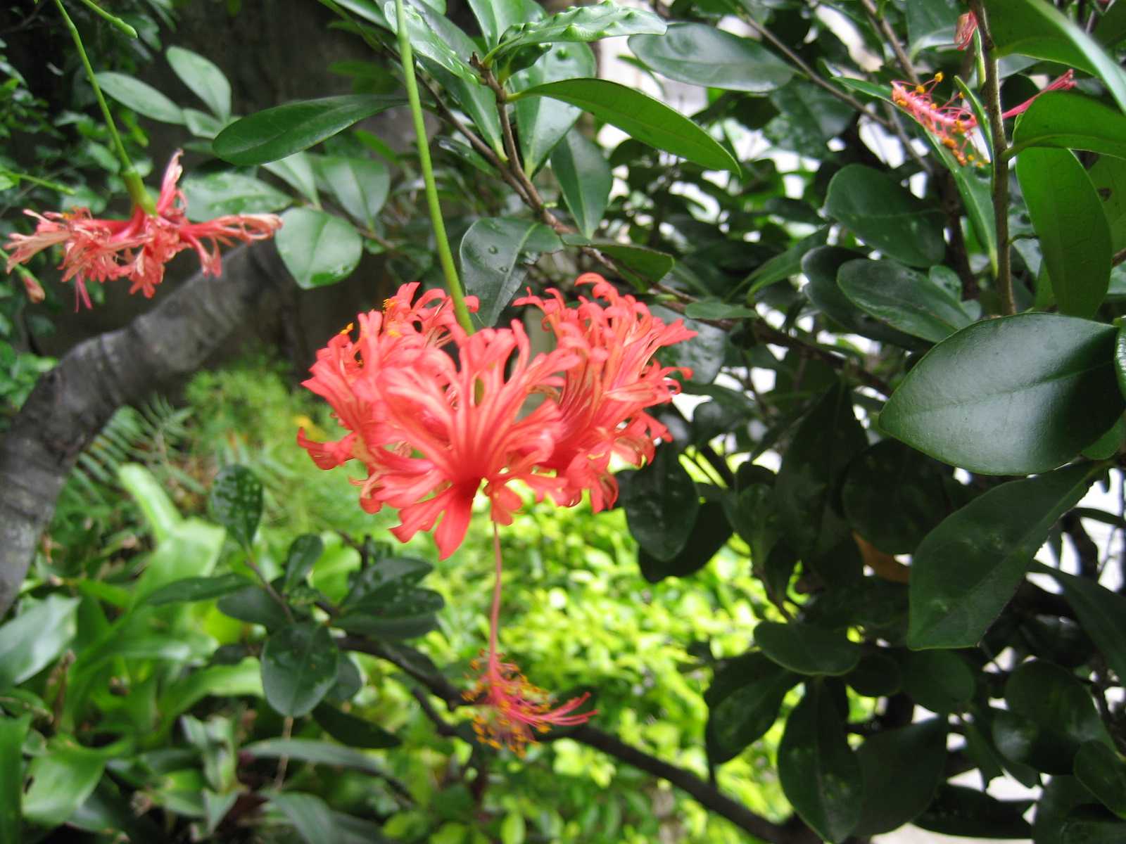 このブッソウゲは必ず下を向いて咲くんですよねー