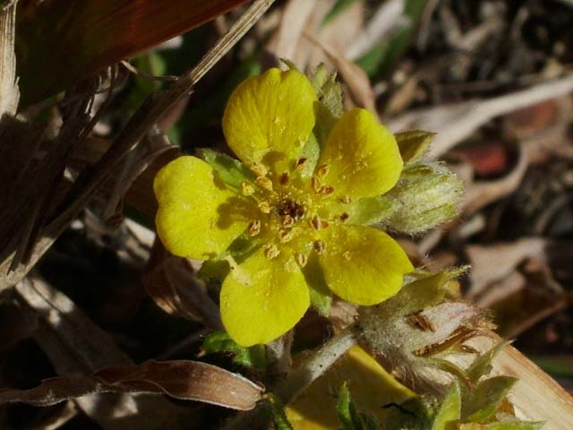 キジムシロに似ていますが、葉に毛が多く、葉の裏が真っ白です。