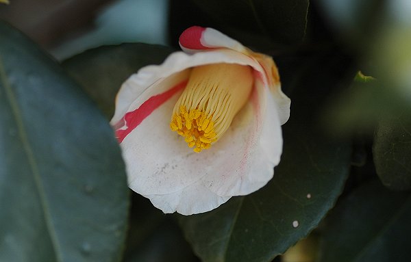 昨日散歩でツバキを見かけましたが、咲きかけたまま