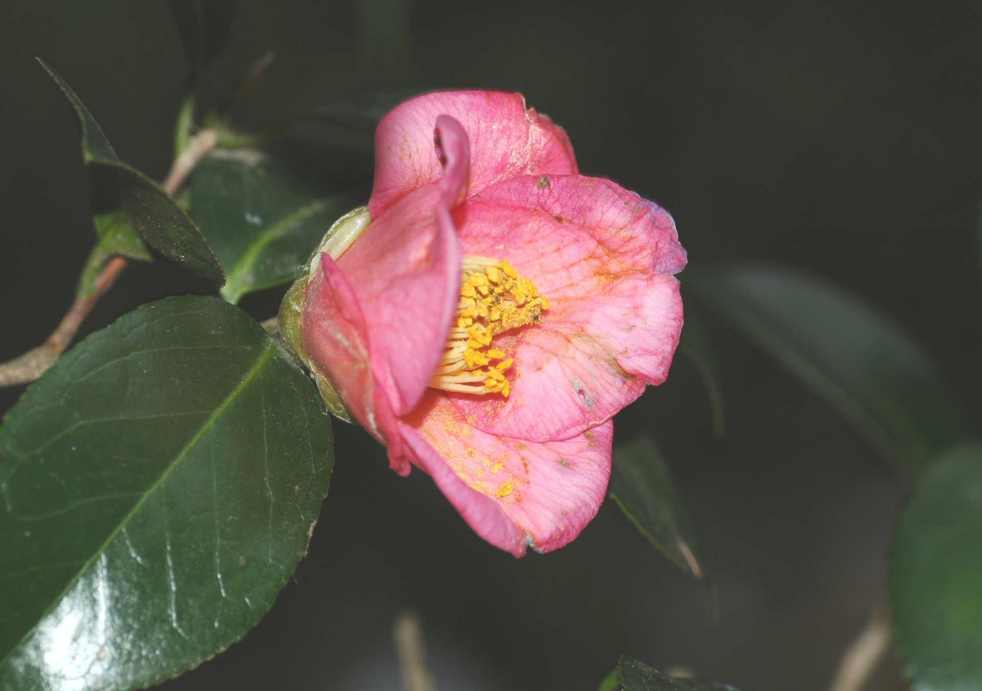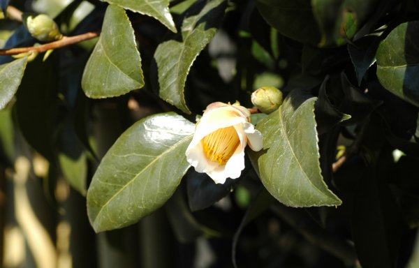うちの椿は咲きそうにありません。近所のサザンカです。