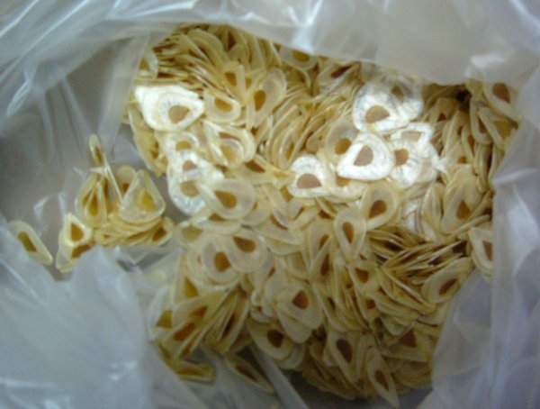 この管状の実のなかに、丸い種がはいっています。
