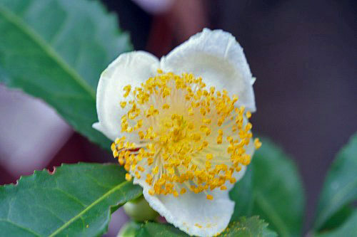 今、お茶の花が次々に咲いています。