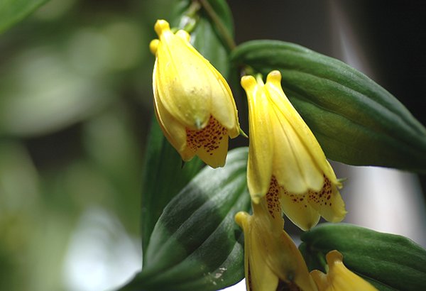 花弁の緑色の斑点は蜜腺なのでいつも昆虫が止まっていて、撮影泣かせの花の一つです。