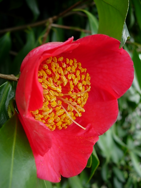 赤い椿の名前はヒゴツバキというのですね、やはりペコさんは