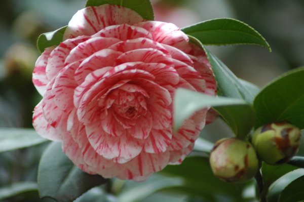 日本の椿も、よく見ると結構派手なのが多いですね。(^^♪