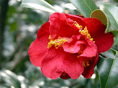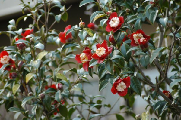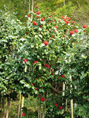ボクハンツバキが見事ですね。真っ赤なバラのような椿が