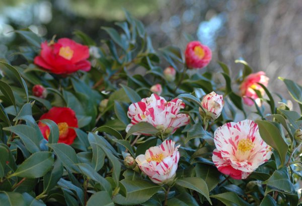 この椿は、本当は赤なのですが寒さでこういう色になります。