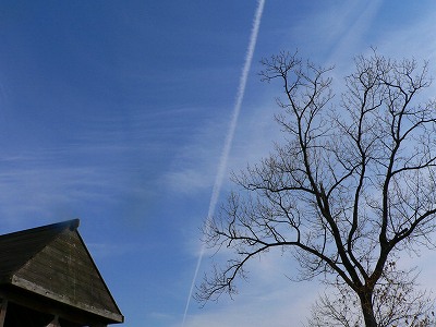 飛行機雲一直線。