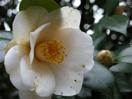 サザンカのような顔をしていて、落花を見たら「ぽとっ」と落ちていました。