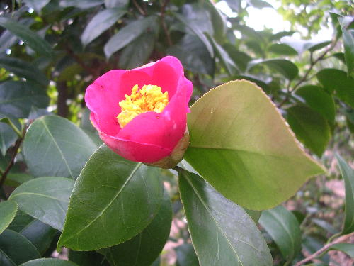 大船フラワーセンターの椿の森、咲き出していました。