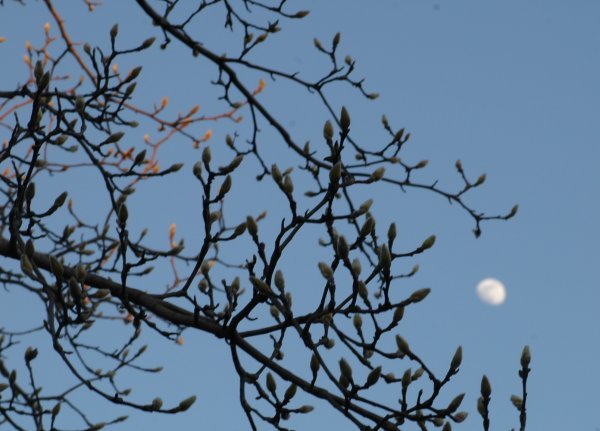 「コブシと月」風情のある写真でした。