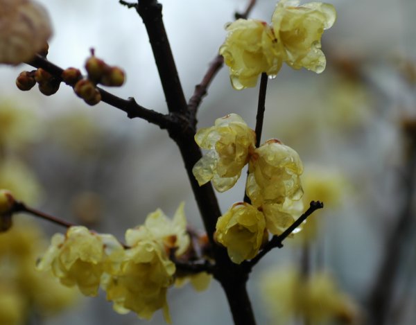 ソシンロウバイも雨に濡れて、ひと雨ごとにあたたかくなるといいね。