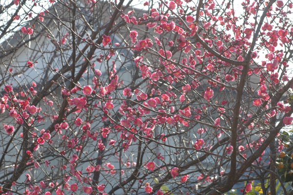 毎年、ここの紅梅はきわだって早く咲きます。