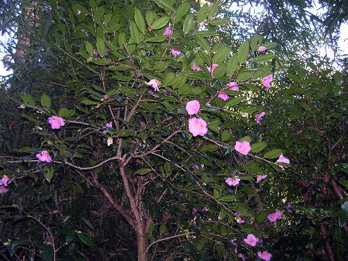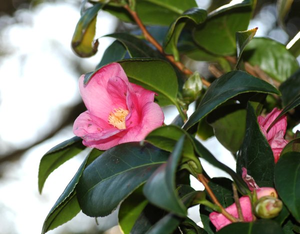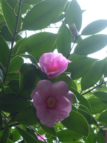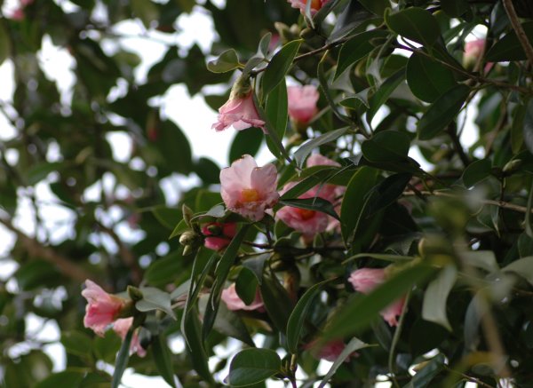 ツバキを植えてある家に