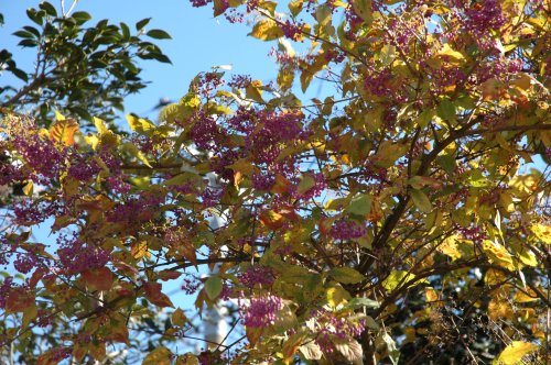 父の祈念に「ムラサキシキブ」を買おうとしています。今の時期に実がなるので、そう決めましたが「コムラサキシキブ」しかありません。
