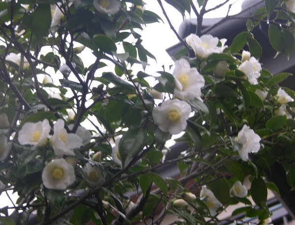今日は雨が残念だが、こんなに開花していた。この侘助は、けっこうちらちらと長く咲く。お茶の花としては、歴史も古く名高い。