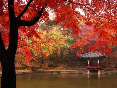 昌徳宮の紅葉です。生憎の雨で写真を撮るのも一苦労でしたが、紅葉は綺麗でした。