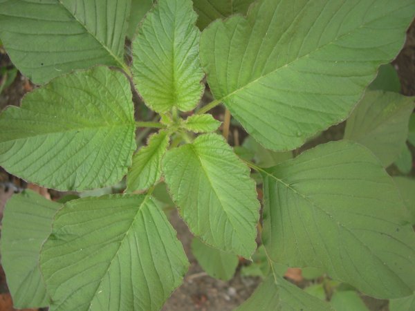 南北アメリカ原産の帰化植物で、高さ0.4-1メートルになる。葉は互生、イヌビユは葉の先がへこむ。