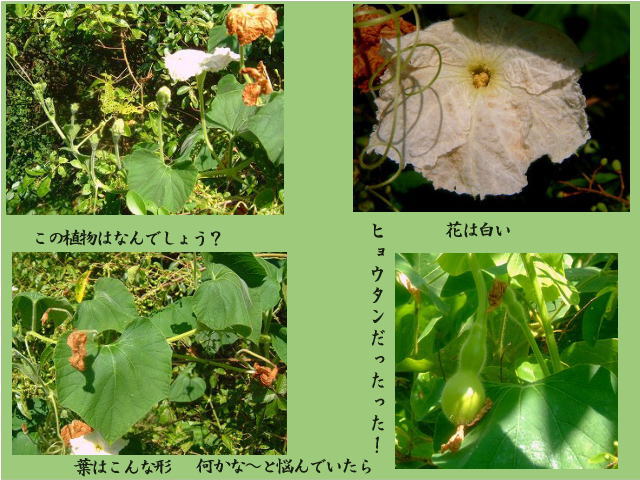 が,白い花をつけるものもあります。瓢箪もそのひとつです」