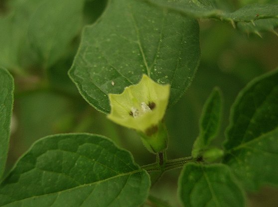 ちょっとぼやけた、センナリホウズキの花です。