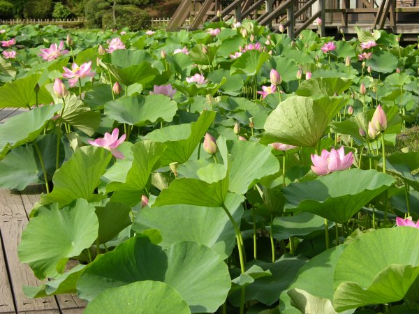 この花壇の前の機関車・・・息子が小さい時、遊びに連れて行き、この機関車で遊んでました。その頃、オオガハスには気づきませんでした。ボートに乗った記憶があるので池はあったと思うのですが・・・ハス田は・・・マダなかったんでしょうね〜