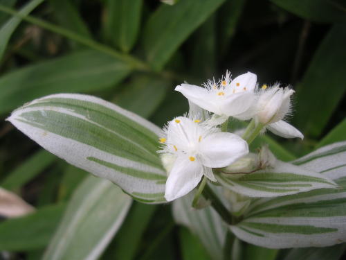 ペコさんが見つけられた斑入りの露草。あれは園芸種なのですか?私もこんな花を見つけました。斑入りのトキワツユクサ