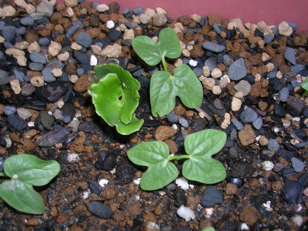 アサガオの芽と多分ソシンロウバイの芽・・・・今頃(笑)