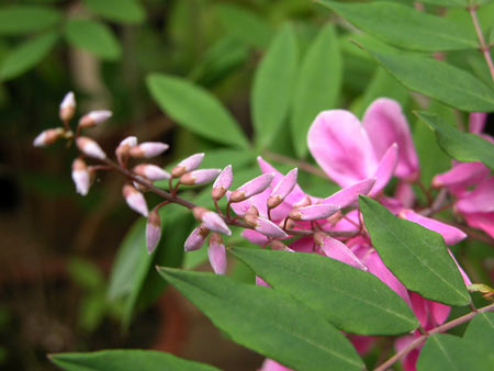 去年はミヤギノハギ一色だったのに、今年はこんなアヤシイものに・・・・。こういう激変は抗争があったということなのかなぁ。イタチハギの方が早く咲きます。
