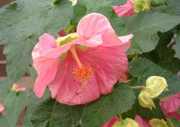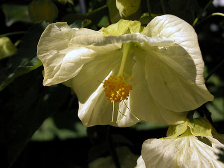 蕾は見て、黄色い花は見られず。今は実がなっています。この実が黒くなって、ミッキーマウスのような印象になるというわけですが・・・・。