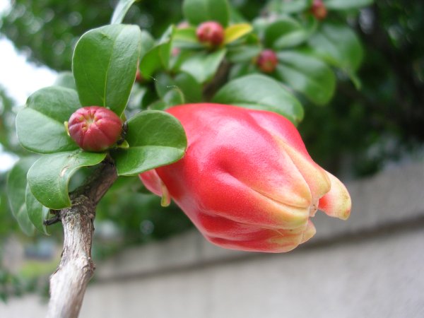 「世の中は三日・・・」ではないが、二日不調で外出しなかったらザクロまで咲いていた。これは八重で結実しない。