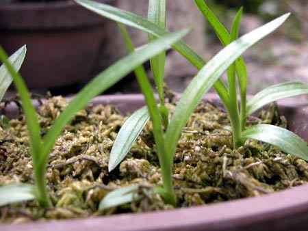 教わったサギソウは、元気に育って今日は焼けてしまったので家の中にいれました。