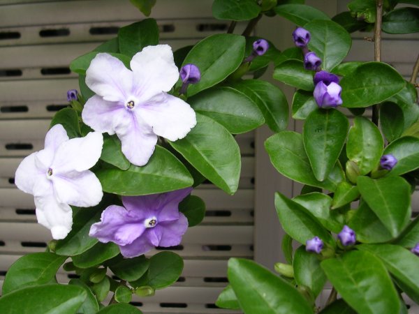 咲いて時間がたつにつれ、白くなります。アルゼンチン原産。「Yesterday-today-and-tomorrow」という英名だとか。