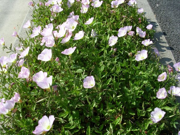 園芸用から野生化した花です。ツキミソウの仲間ですが、昼間開花しています。