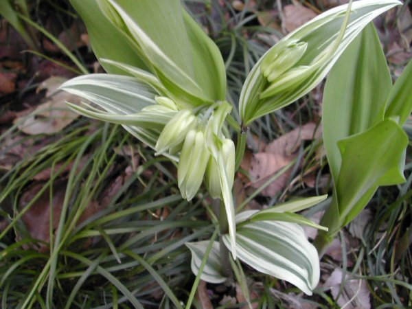 アマドコロと似ているが、こちらの方が花の数が多い。園芸用で、これは斑が入っている。