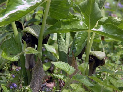 去年は時期をはずして歯噛みをした、木の花。今年は捕まえるぞ!というわけで、魅了されるもののひとつ、サトイモ科ウラシマソウ。(多分、秋の赤い実は撮影できない。)