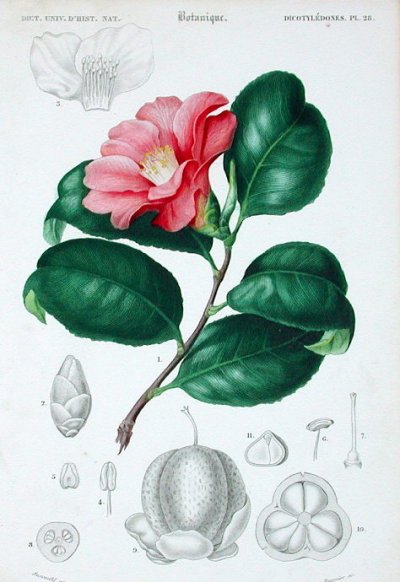 オトメツバキ。この園芸種は江戸時代に作られた。ヨーロッパのボタニカル・アートにも多々出てくる。一体、いつ渡ったのだろう。シーボルトの後だろうか・・・考えるだけでゾクゾク。