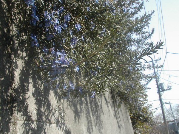 晴れた日に坂を下りたすぐ脇に、ローズマリーの明るい花があってちょっと感動して撮った写真です。