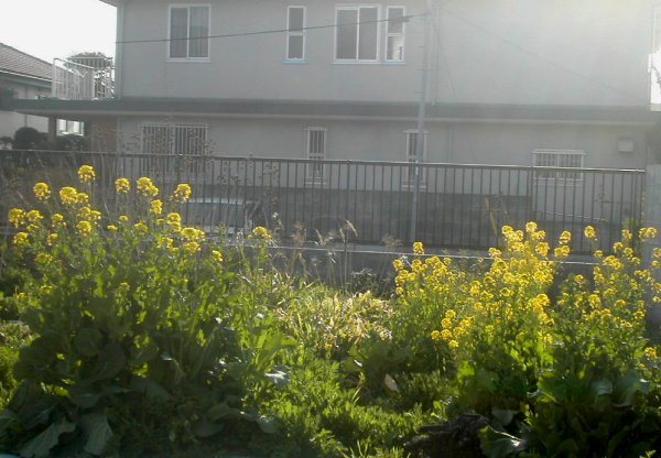 この空き地。去年はすごい勢いで花畑になりました。オニゲシやハナビシソウであふれかえったのです。今年も・・・・芽はでています。(喜)