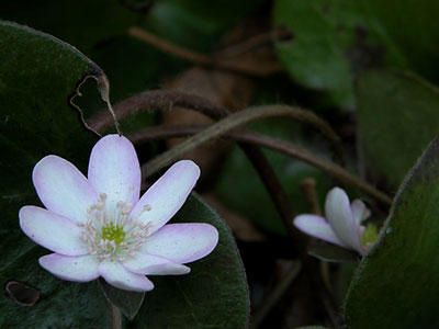 ミスミソウは根生葉の裂片は全緑で先端はとがる。葉質はやや厚くつやがある。 裏面や葉柄には長い毛がある。某図鑑よりの抜粋ですが、個人的には、純粋なスハマソウは未だ見ていないような気がします。