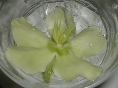 まだ咲き続けているので、種に養分が行かないように切りました。コップに浮かべて10日くらいになります。