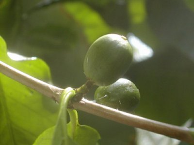 これという宛てもなく見たり撮ったりしていたのですが、温室で20年近く前に見て昨年の夏は蚊の襲撃にあって発見できなかったコーヒーの木に再開。まぁ!この20年なにしてたの?と聞けばたわわなる実が赤に緑になっているのでありました。