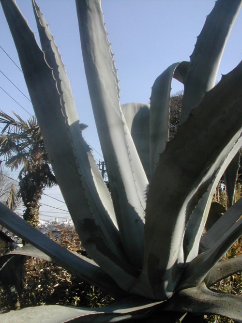 普段まったく行かない道を歩いて、ふっと開けた空き地にこのリュウゼツランがあった。かなり大きい。南の植物は大きいものが多いので、普通の家庭ではなかなか植えられない。そんなことで、貴重なものにまた出っくわして得した気分。
