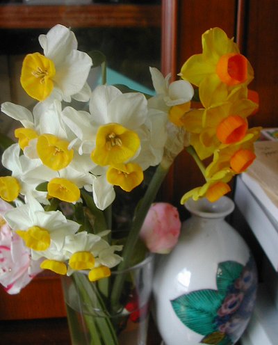 これは、ご近所のT宅のスイセンを頂いた。そばの花瓶には、入りきらなかった。スイセンは好きだなぁ。