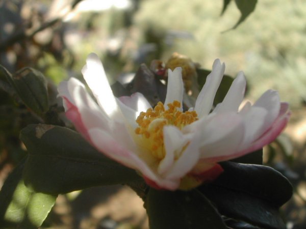 お茶の葉みたいな葉と花、ツバキでもこんなのがあるのだぁ。