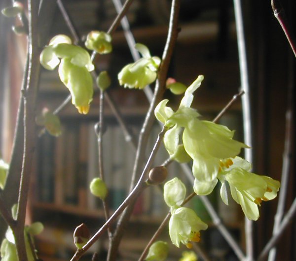正月に母が咲かせたのは無理に早咲きにしたため、ちょっといじけていた。これは室内の温度でほころんだもの。