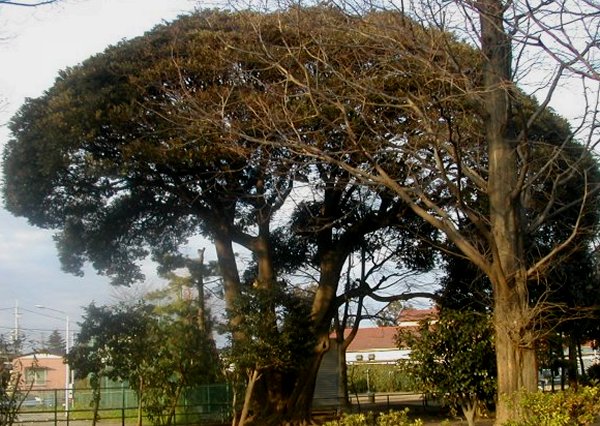 夏は見逃しても、冬のシイの木は忽然と現れその姿を見せる。通っていた小学校の前にもシイの多い公園があり、施設と学校の緑は案外繋がっていたのかもしれない。