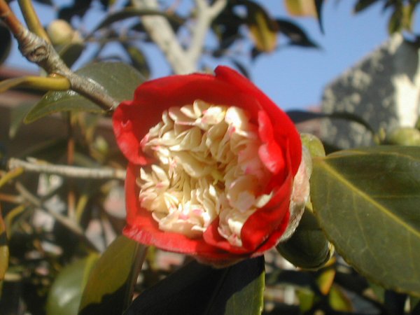 変わり咲きとでもいうのか。ツバキは一つ気がつくと、どんどん他のツバキが咲いてるのに気付く。何百種あるのだろう。このツバキも最初の一輪。